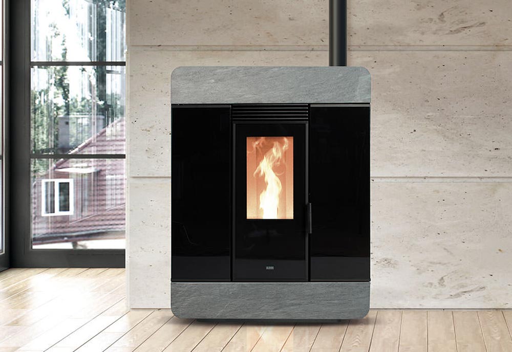 Face avant en pierre blanche et vitre, Possibilité de sortie de fumées supérieure et latérale. Capteurs de sécurité sur porte et réservoir. Réservoir étanche. Bruleur autonettoyant. Inspection face avant totale. WIFI de série.